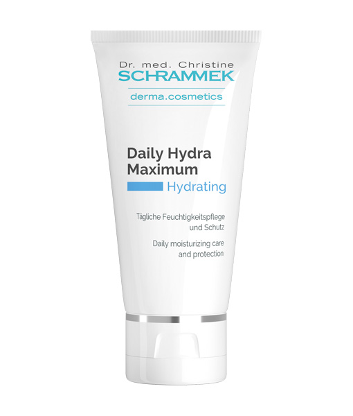 - This step – Moisturising & sun protection: Dr. Med. Christine Schrammek Daily Hydra Maximum SPF 20. This is a very nice daytime moisturiser for the colder and/or drier seasons when skin needs extra hydration, paired with a plethora of other ingredients (Peelmoist ES 160 to remove dead skin cells, antioxidant Ginkgo Biloba with vessel-strengthening and toning effects, and RonaCare Ectoin to protect against negative environmental influences). It is meant to have a light feel and absorb quickly, although it does leave a slightly greasy film, thus making it more appropriate for drier days or when paired with a mattifying foundation. One trick that I learned is to leave the moisturiser absorb for at least five minutes before applying makeup.